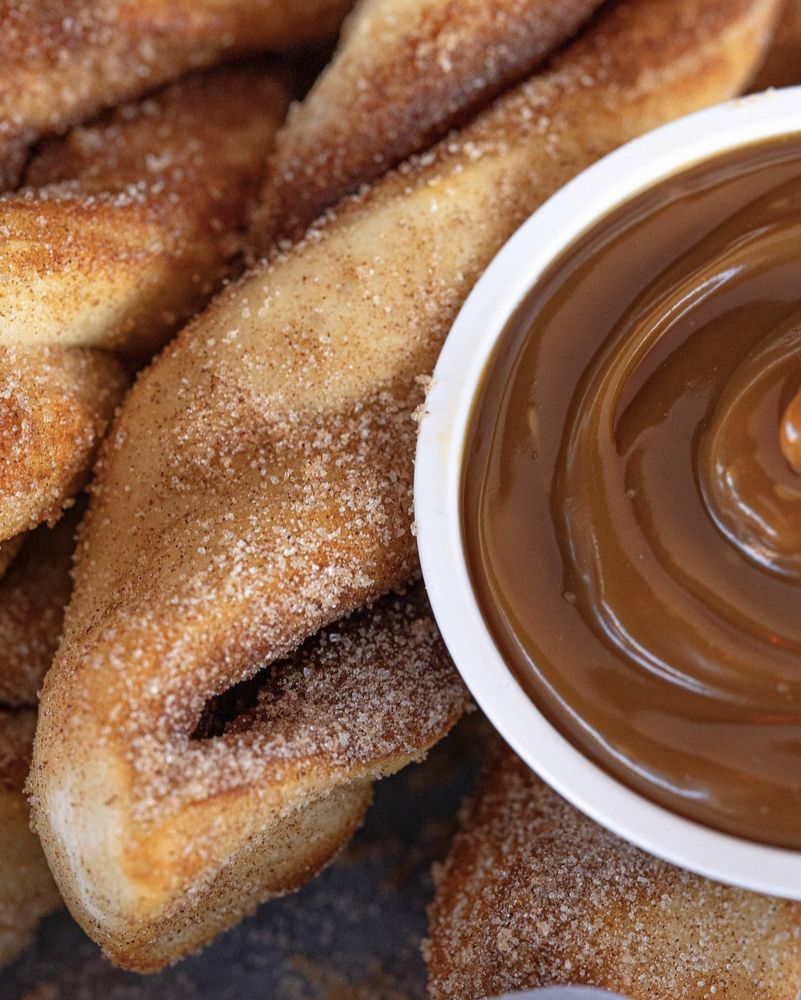 Our famous twists rolled in a brown and white sugar cinnamon mixture and topped with a delicious powdered sugar glaze.