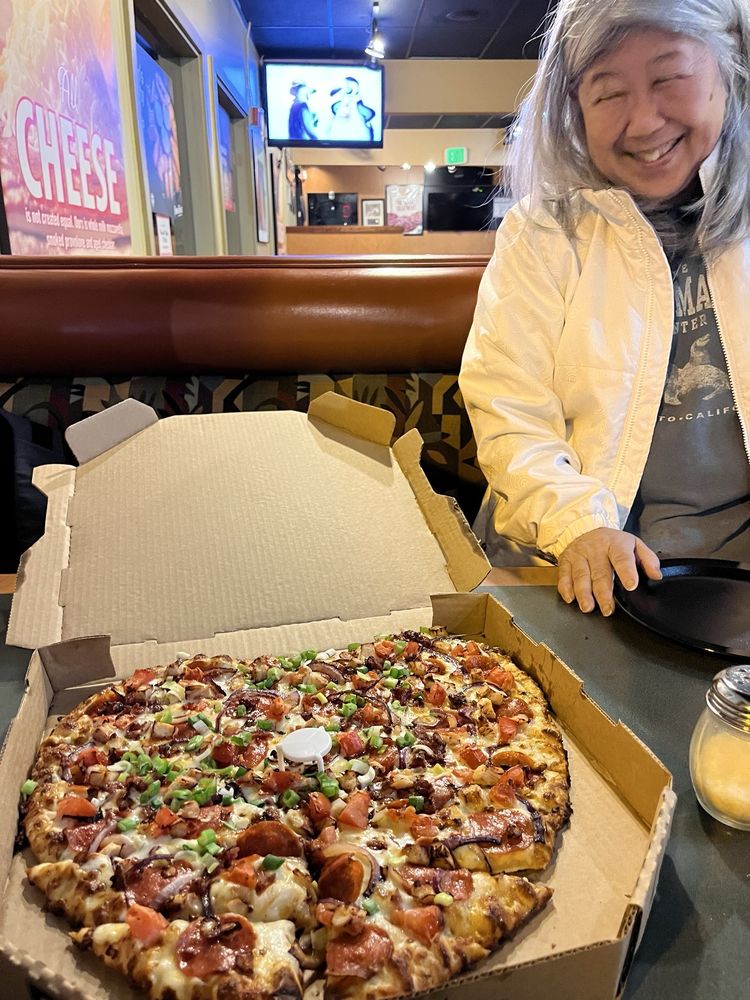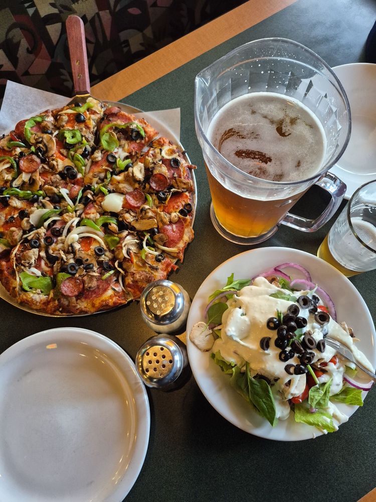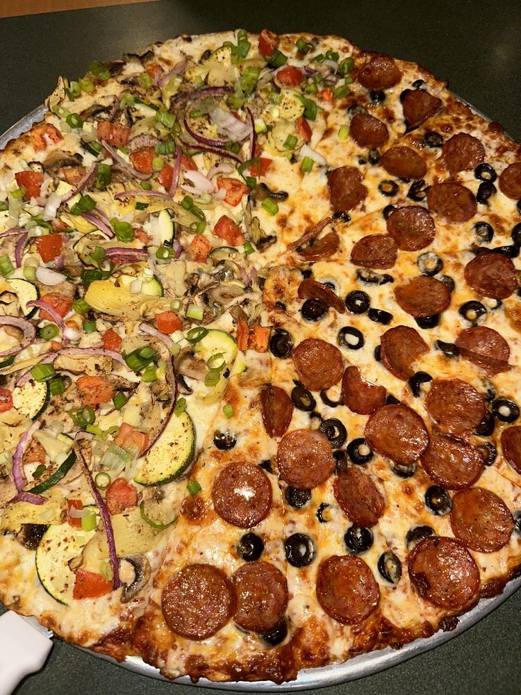 Pepperoni, Italian sausage, salami, linguica (pork sausage), mushrooms, green peppers, onions, black olives, and zesty red sauce on original crust.