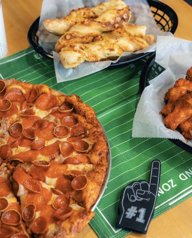 Includes 5 personal specialty pizzas, five 1-topping pizzas, 12 classic wings, and 8 cookies.